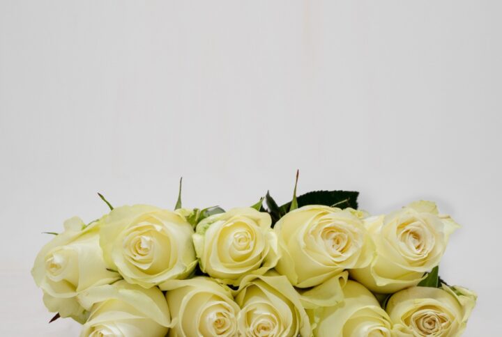 The roses are fully bloomed and fresh, with some petals exhibiting slight curling, adding to their natural beauty.
